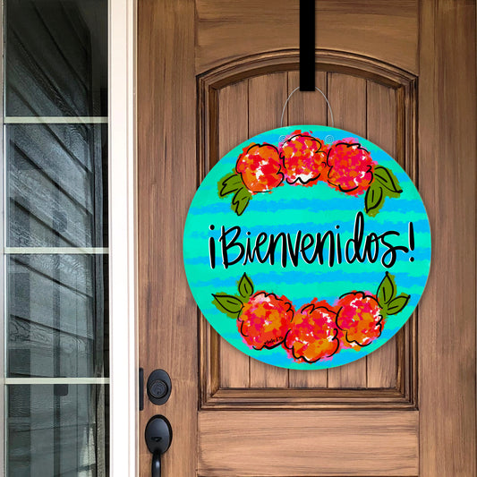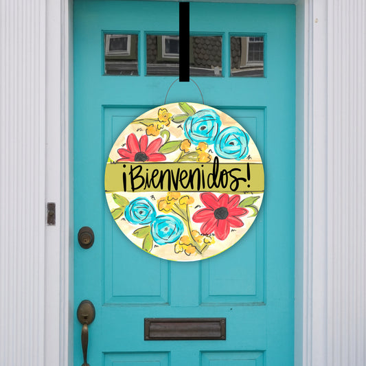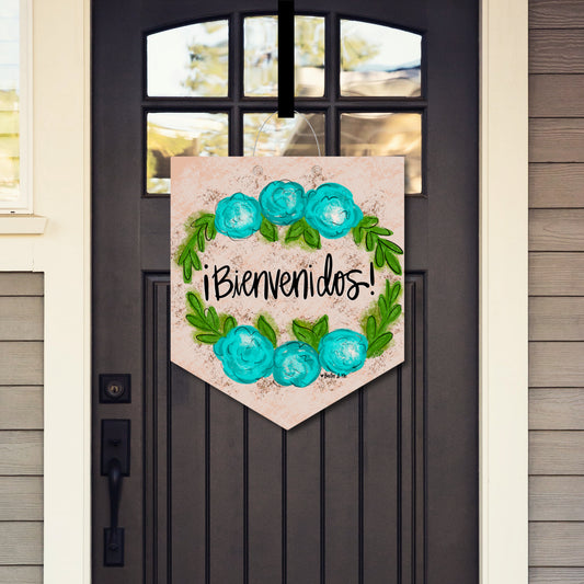 Bienvenidos Blue Floral Door Hanger