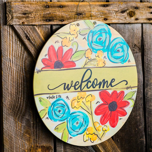 Welcome Flower Circle Door Hanger