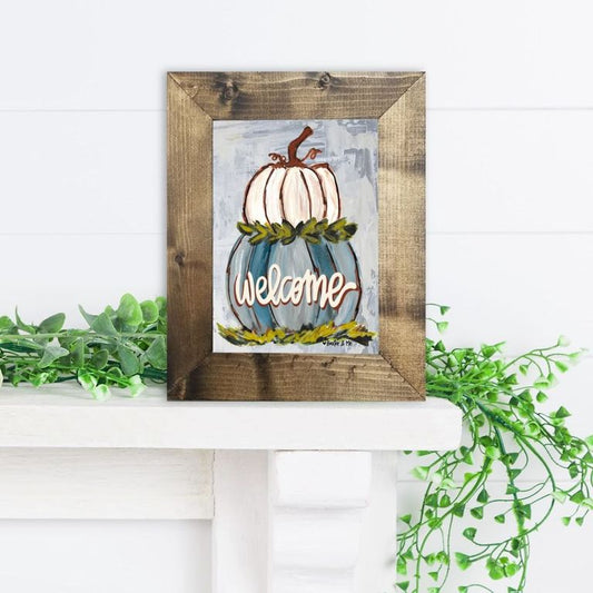Welcome Double Stacked Neutral Pumpkin Framed Art