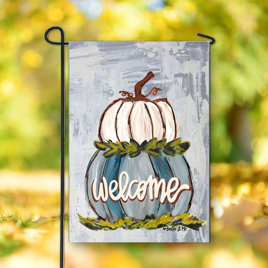Welcome Double Stacked Neutral Pumpkin Garden Flag