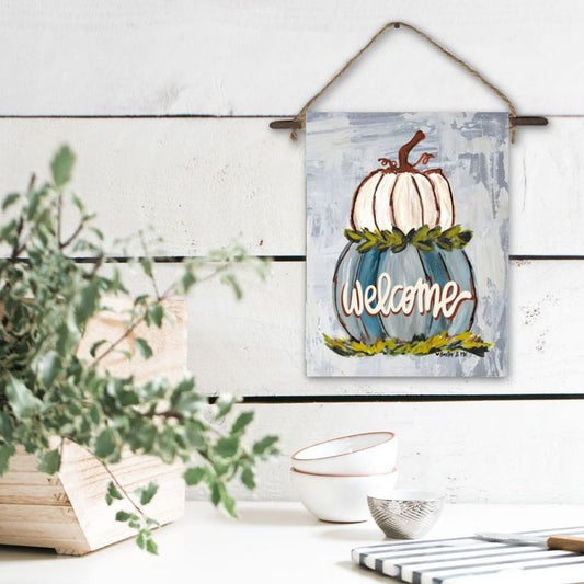 Welcome Double Stacked Neutral Pumpkin Mini Wall Hanging