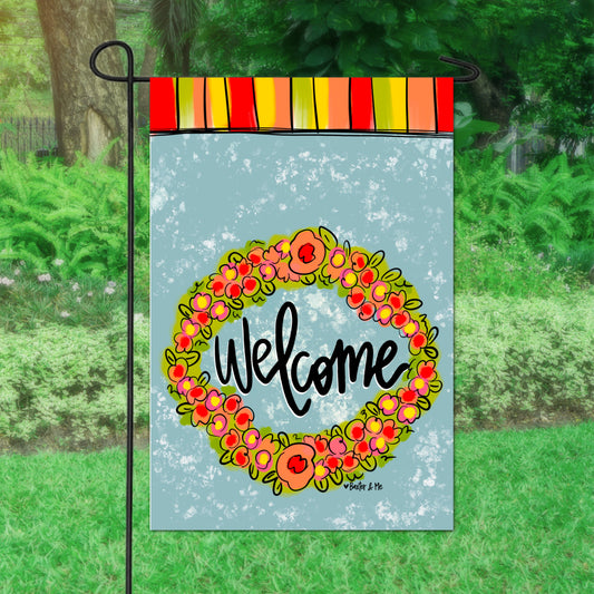 Welcome Little Flower Wreath Garden Flag