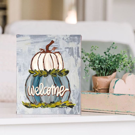 Welcome Double Stacked Neutral Pumpkin Wrapped Canvas
