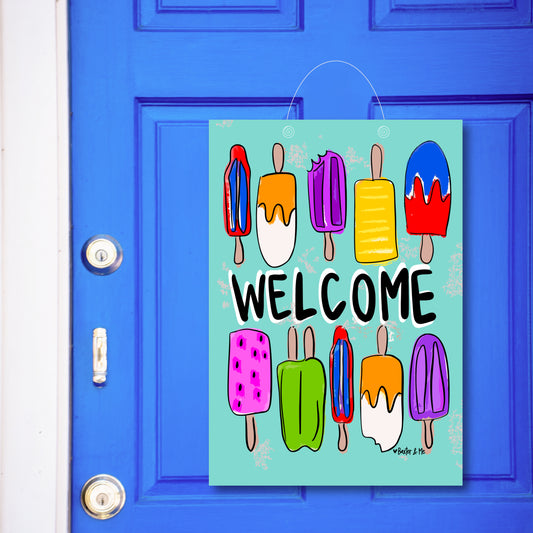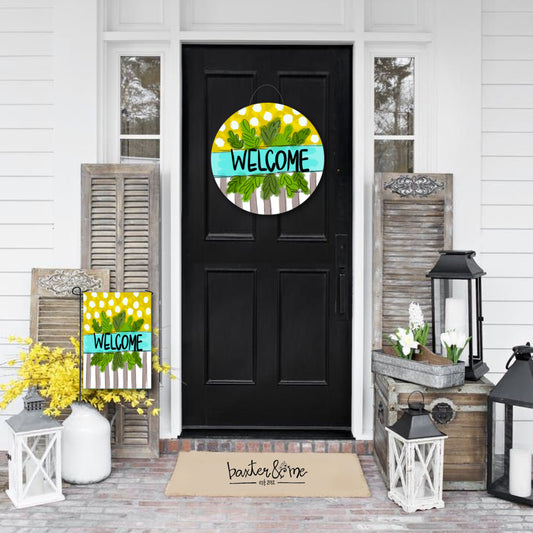 Welcome Pretty Pink & Purple Floral Door Hanger