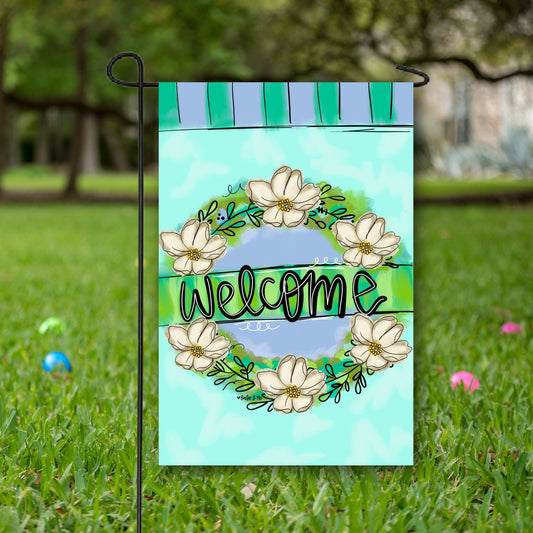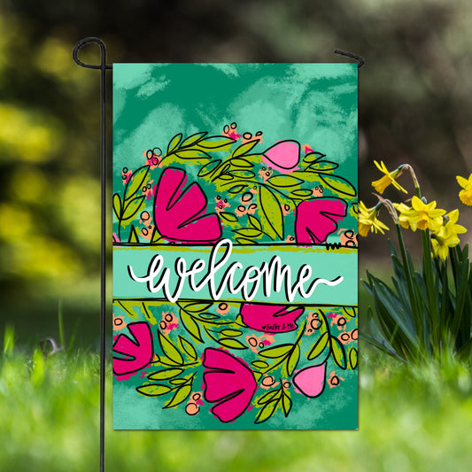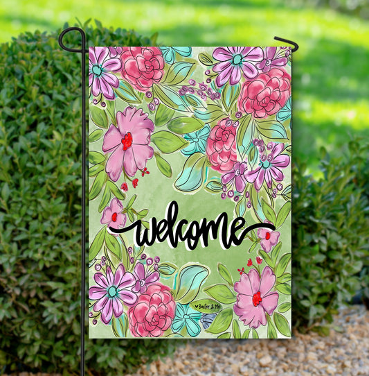 Welcome Pretty Pink & Purple Floral Garden Flag