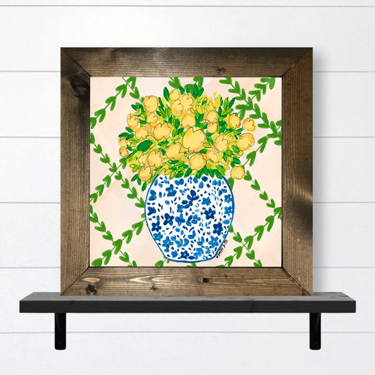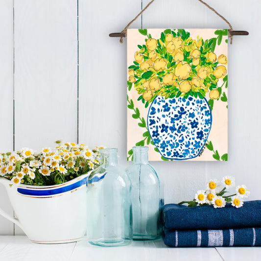 Yellow Floral in Blue Willow Mini Wall Hanging