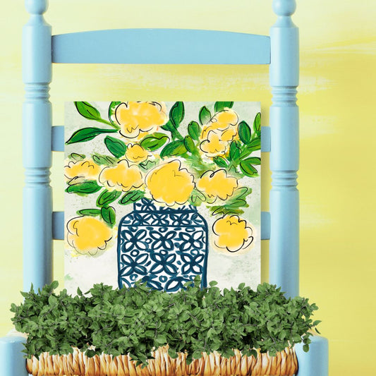 Yellow Arrangement in Blue & White Vase Wrapped Canvas