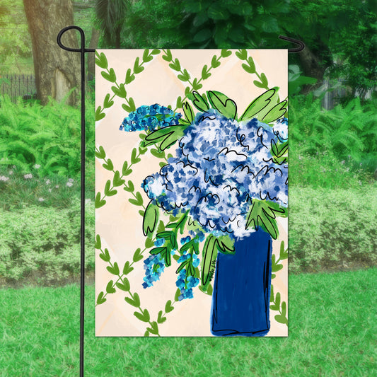 Blue Floral with Greenery Garden Flag