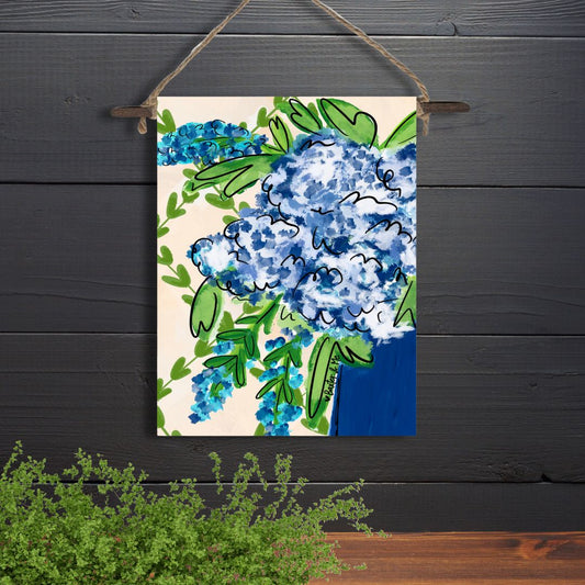 Blue Floral with Greenery Mini Wall Hanging