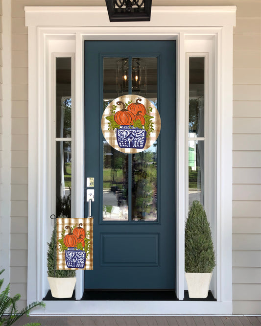 Blue Willow Cotton Holly Berry Cardinal Door Hanger