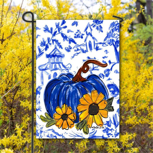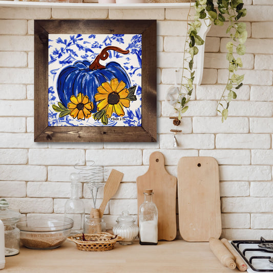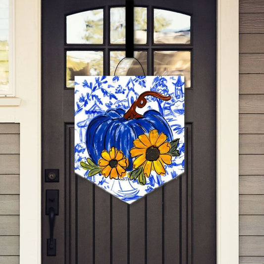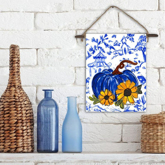 Blue Willow Sunflower Pumpkin Mini Wall Hanging