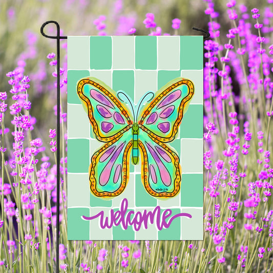 Checkered Butterfly Garden Flag