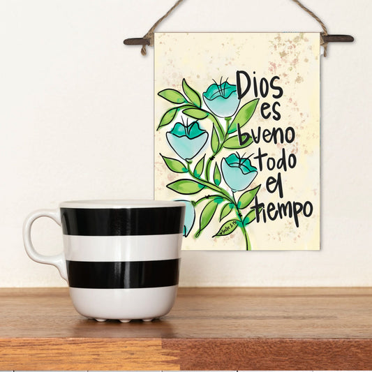 Flores azules Dios es bueno Mini Wall Hanging