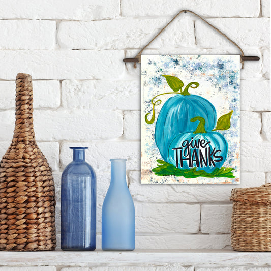 Give Thanks Blue Pumpkins Mini Wall Hanging