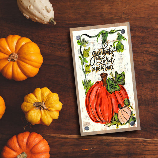 Give Thanks to the Lord for He is Good Pumpkin Wrapped Canvas