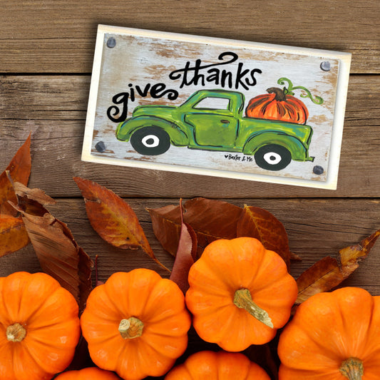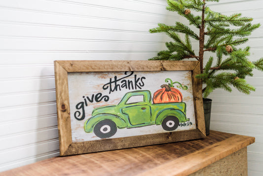 Give Thanks Pumpkin Truck - Wrapped Canvas