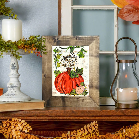 Give Thanks to the Lord for He is Good Pumpkin Framed Art