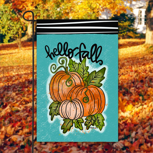 Hello Fall Pumpkin Leaves Garden Flag
