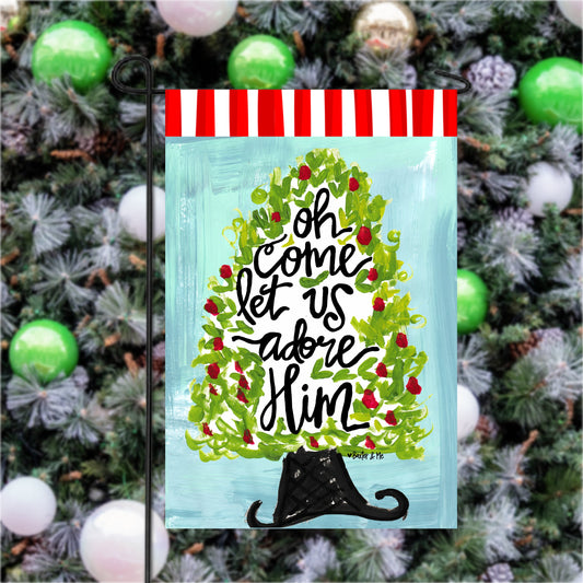 O Come All Ye Faithful Neutral Round Nativity Garden Flag