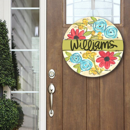 Welcome 3 Flowers Door Hanger