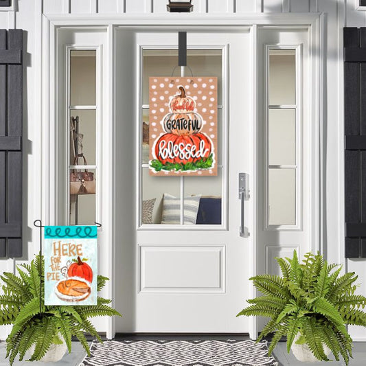 Thankful Grateful Blessed Pumpkin Door Hanger