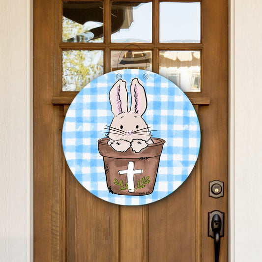 Bunny in Cross Pot Door Hanger