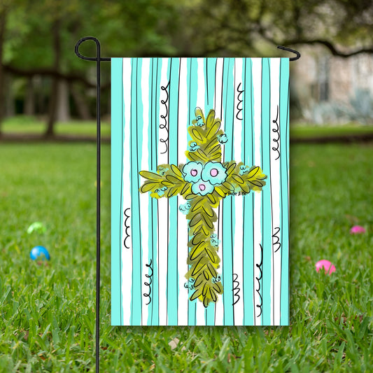 Striped Greenery Cross Garden Flag