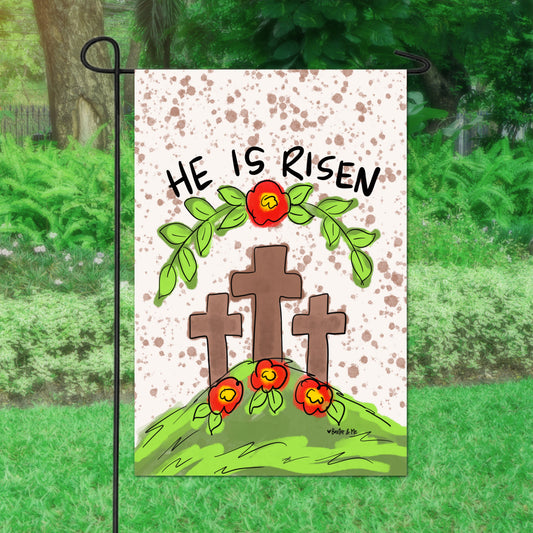 He is Risen 3 Cross Garden Flag