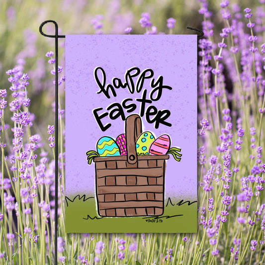 Purple Happy Easter Basket Garden Flag