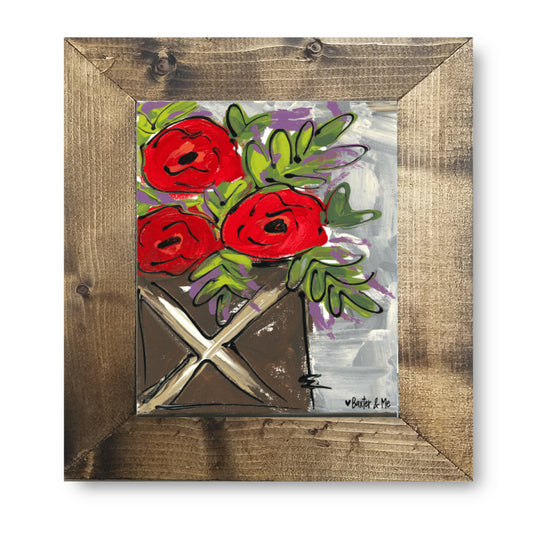 Poppies In A Wooden Jar - Framed Art