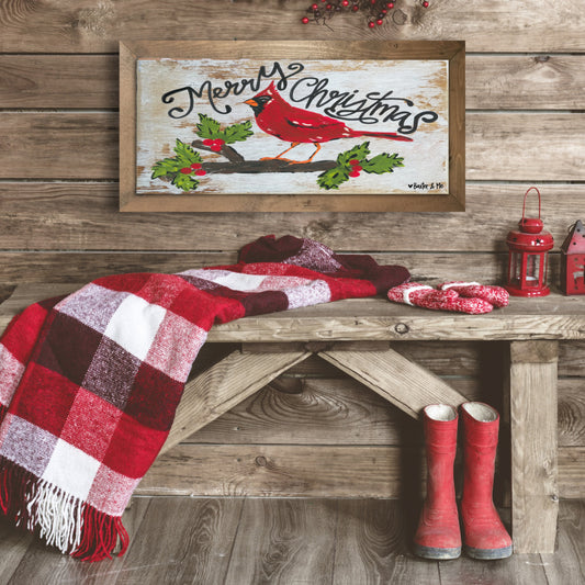 Blue Willow Cotton Holly Berry Cardinal Happy Block