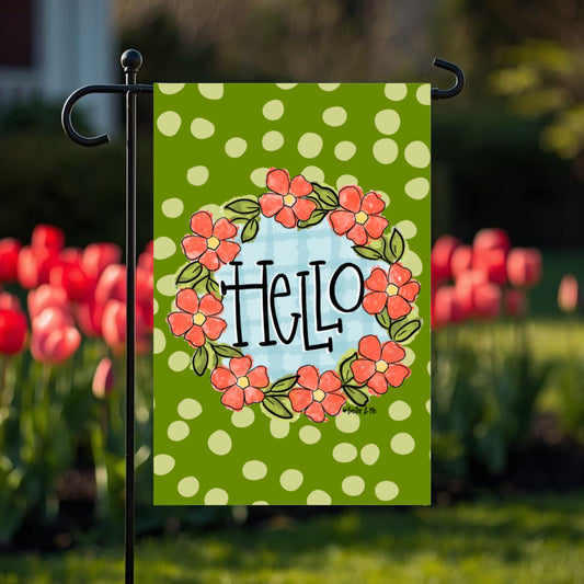 Green Scalloped Frame Floral Garden Flag