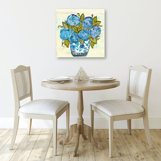 Chinoiserie Vase with Blue Hydrangeas Wrapped Canvas