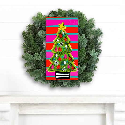 Funky Red Pink Tree Wrapped Canvas