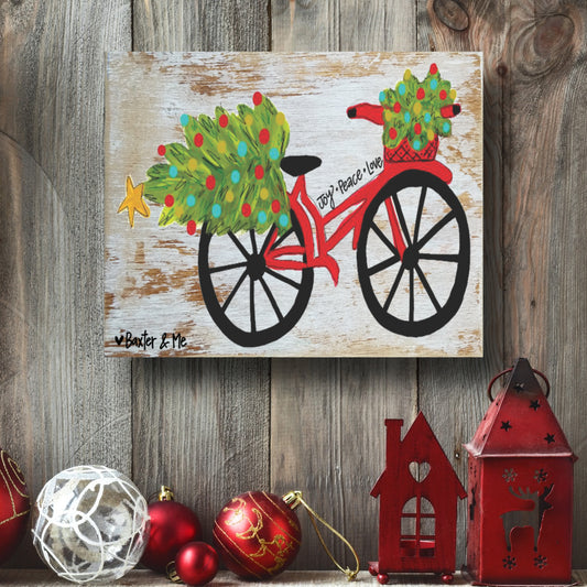 Joy Peace Love Bike - Wrapped Canvas, 8" x 10"