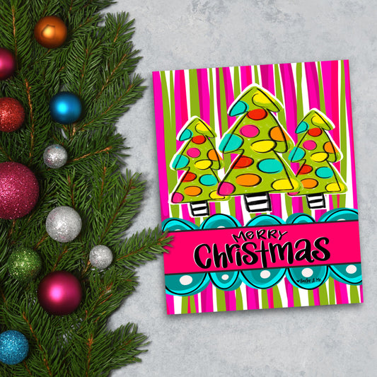 Funky Striped Christmas Tree Trio Wrapped Canvas