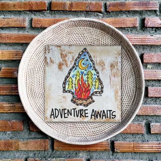 Adventure Awaits Arrowhead - Wrapped Canvas; 12" x 12"