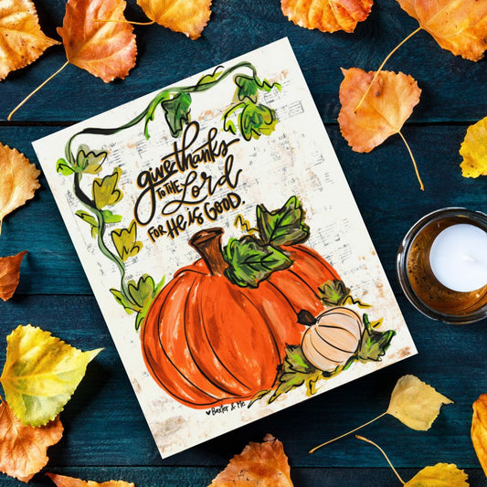 Give Thanks to the Lord for He is Good Pumpkin Wrapped Canvas