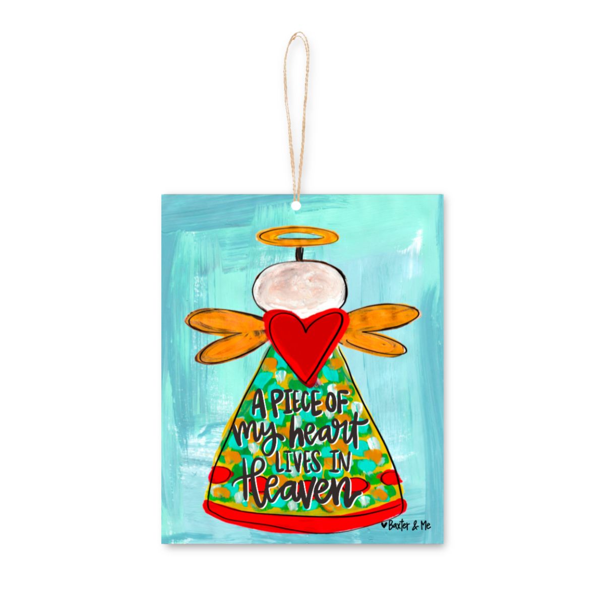 Our wood ornaments feature original artist-created designs and blank backs that are perfect for personalization. Each ornament measures 3.75" wide and 4.75" tall and includes a hand-tied jute hanger.