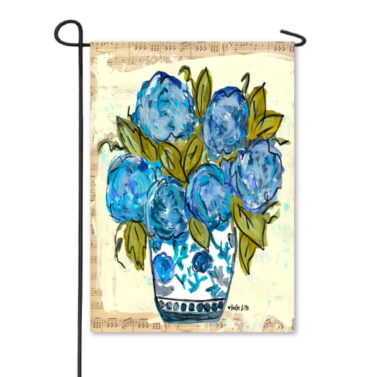 Chinoiserie Vase with Blue Hydrangeas Garden Flag
