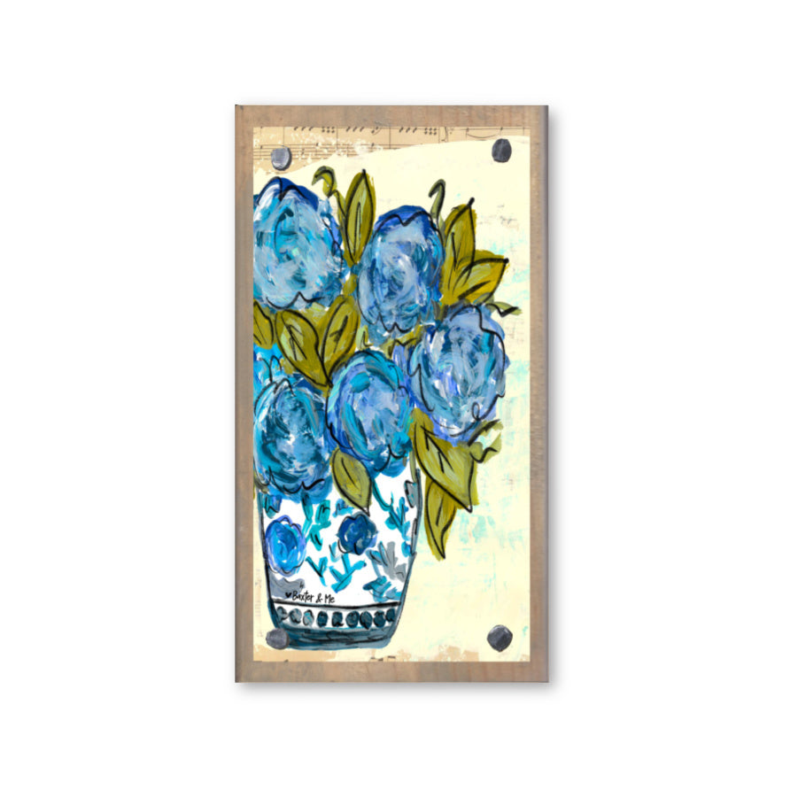 Chinoiserie Vase with Blue Hydrangeas Happy Block