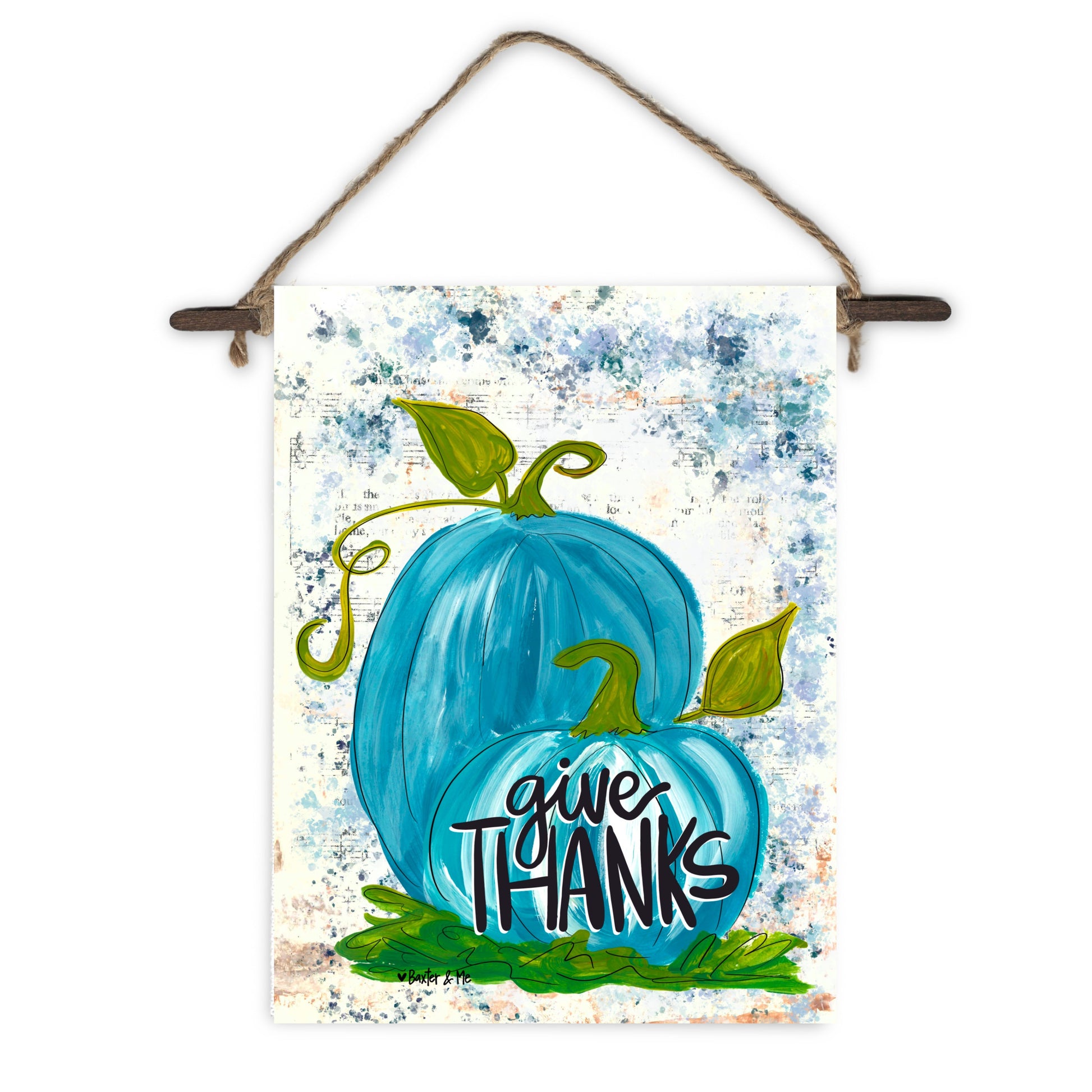 Give Thanks Blue Pumpkins Mini Wall Hanging