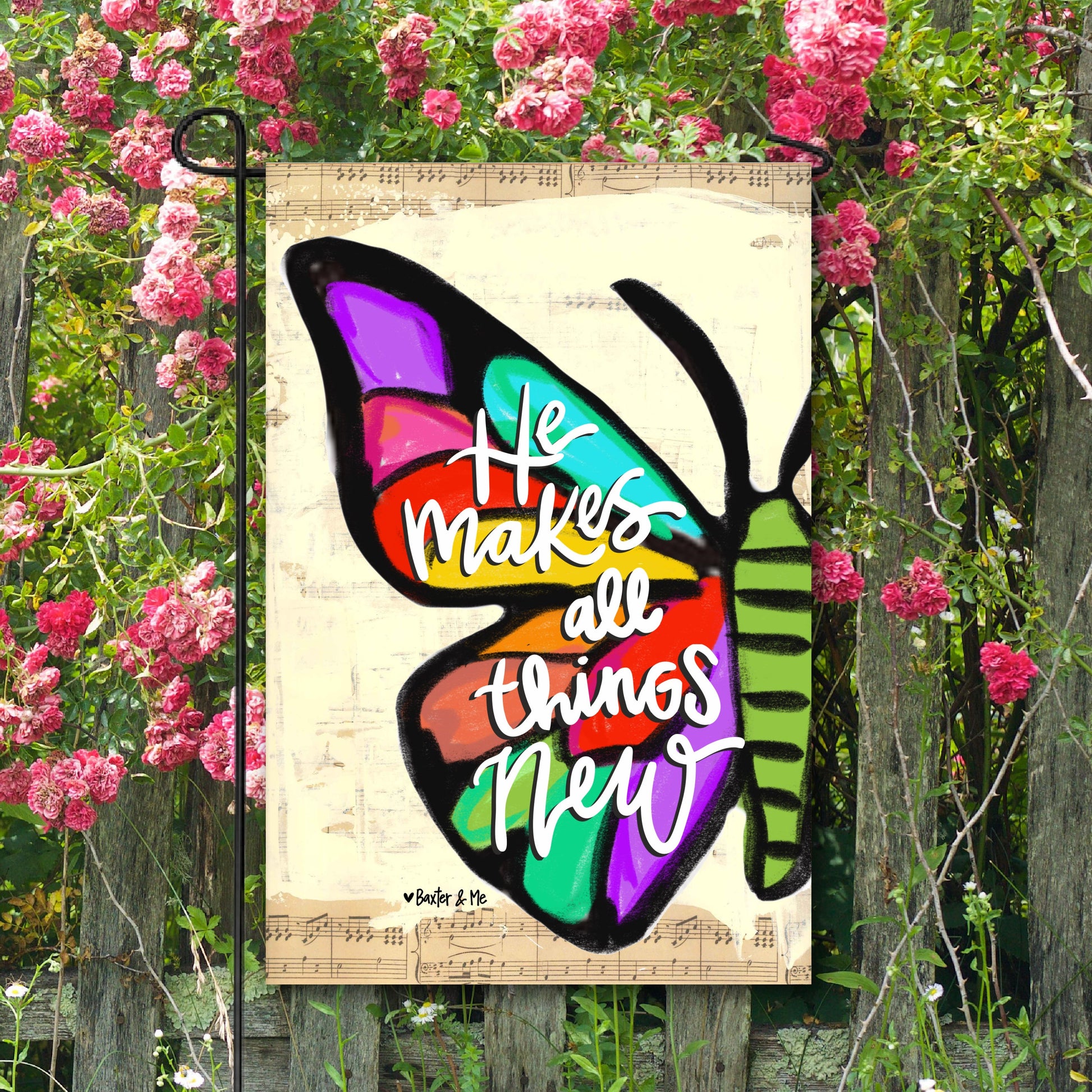 Our garden flags are of the highest quality - sewn in Mississippi and printed on both sides for equally beautiful prints from any angle. The water-resistant fabric allows the vibrant art to pop and resist fading throughout the season. Measures 18" x 12". Flag stand not included.