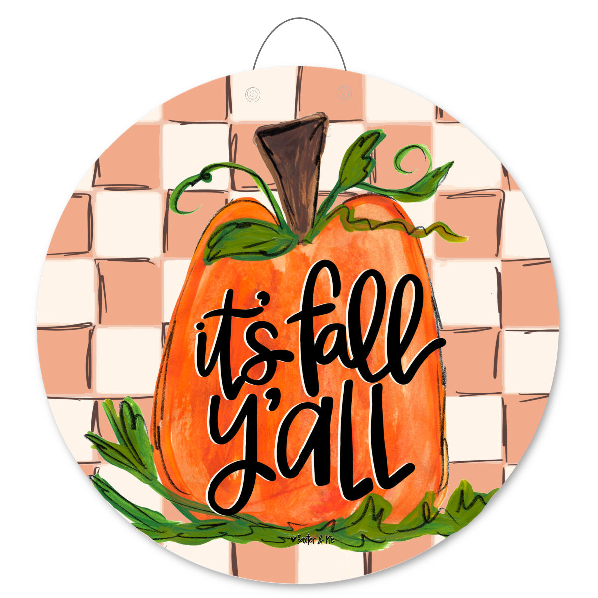 It's Fall Y'all Checkered Pumpkin Door Hanger