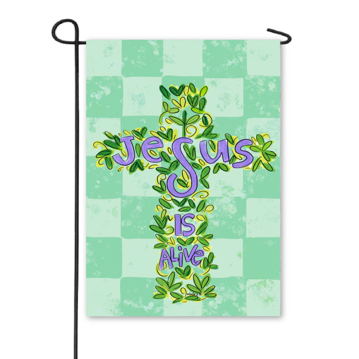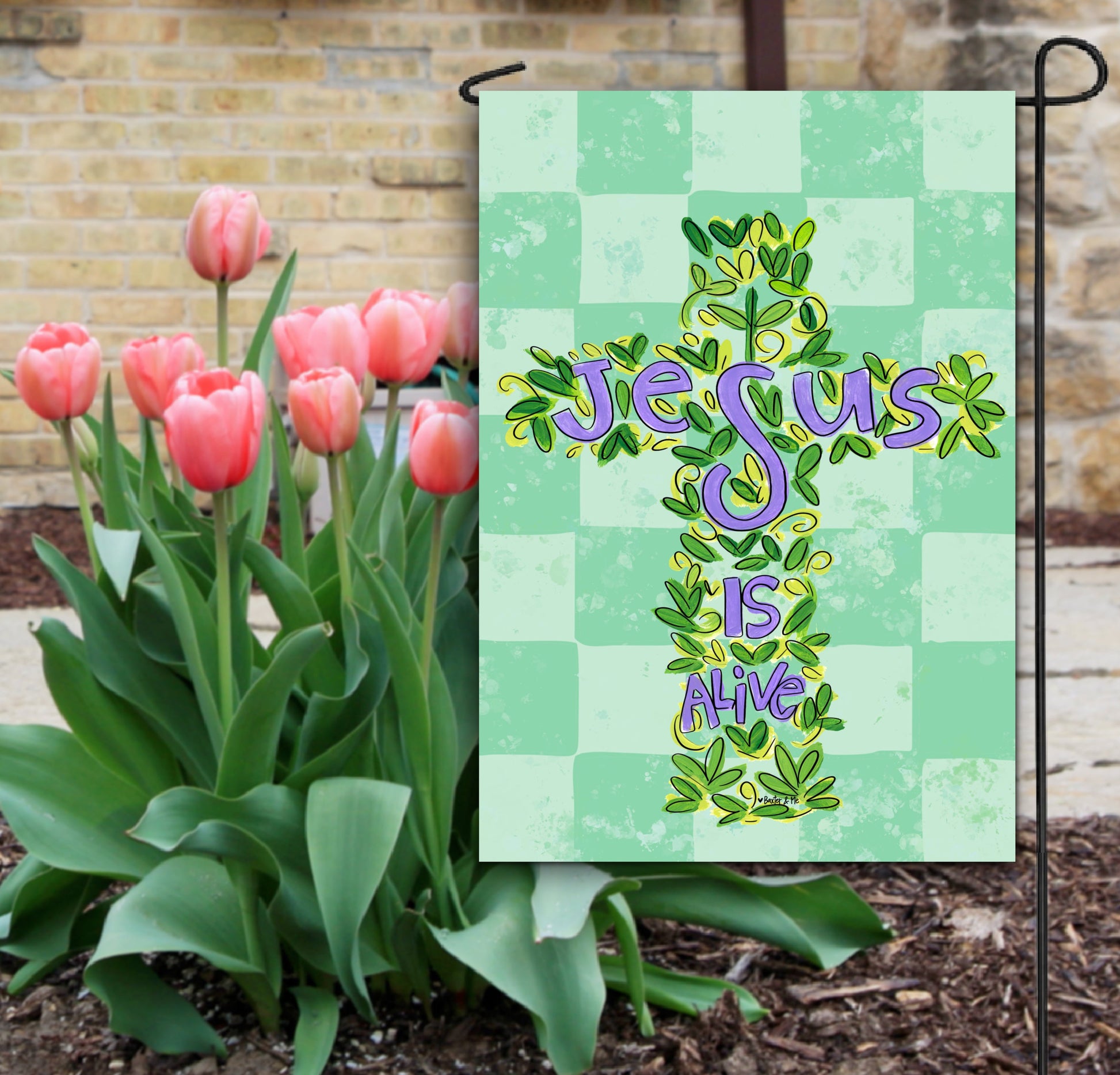 Our garden flags are of the highest quality - sewn in Mississippi and printed on both sides for equally beautiful prints from any angle. The water-resistant fabric allows the vibrant art to pop and resist fading throughout the season. Measures 18" x 12". Flag stand not included.