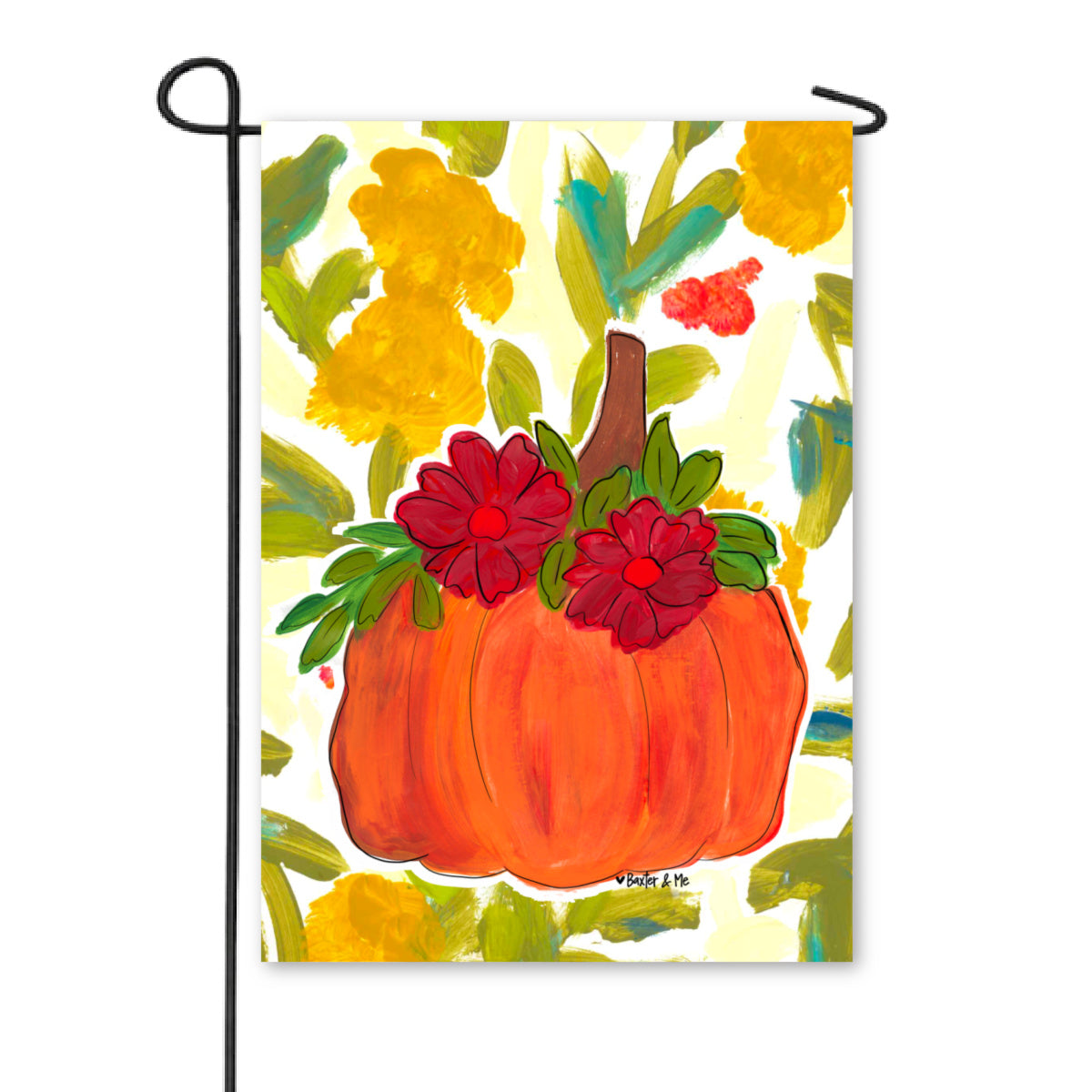 Pumpkin with Fall Flowers Garden Flag