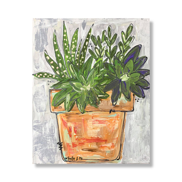 Succulent Mixed Planter - Wrapped Canvas, 8" x 10"