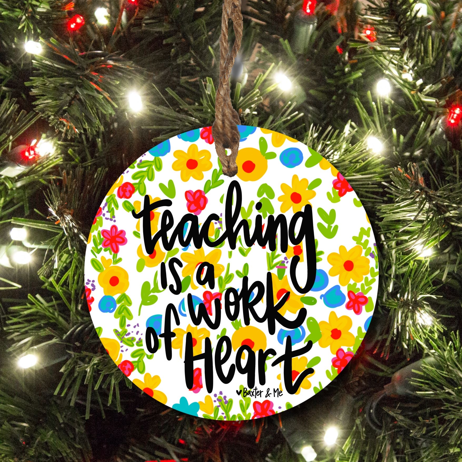 Our wood ornaments feature original artist-created designs and blank backs that are perfect for personalization. Each round ornament measures 5" in diameter and includes a hand-tied jute hanger.